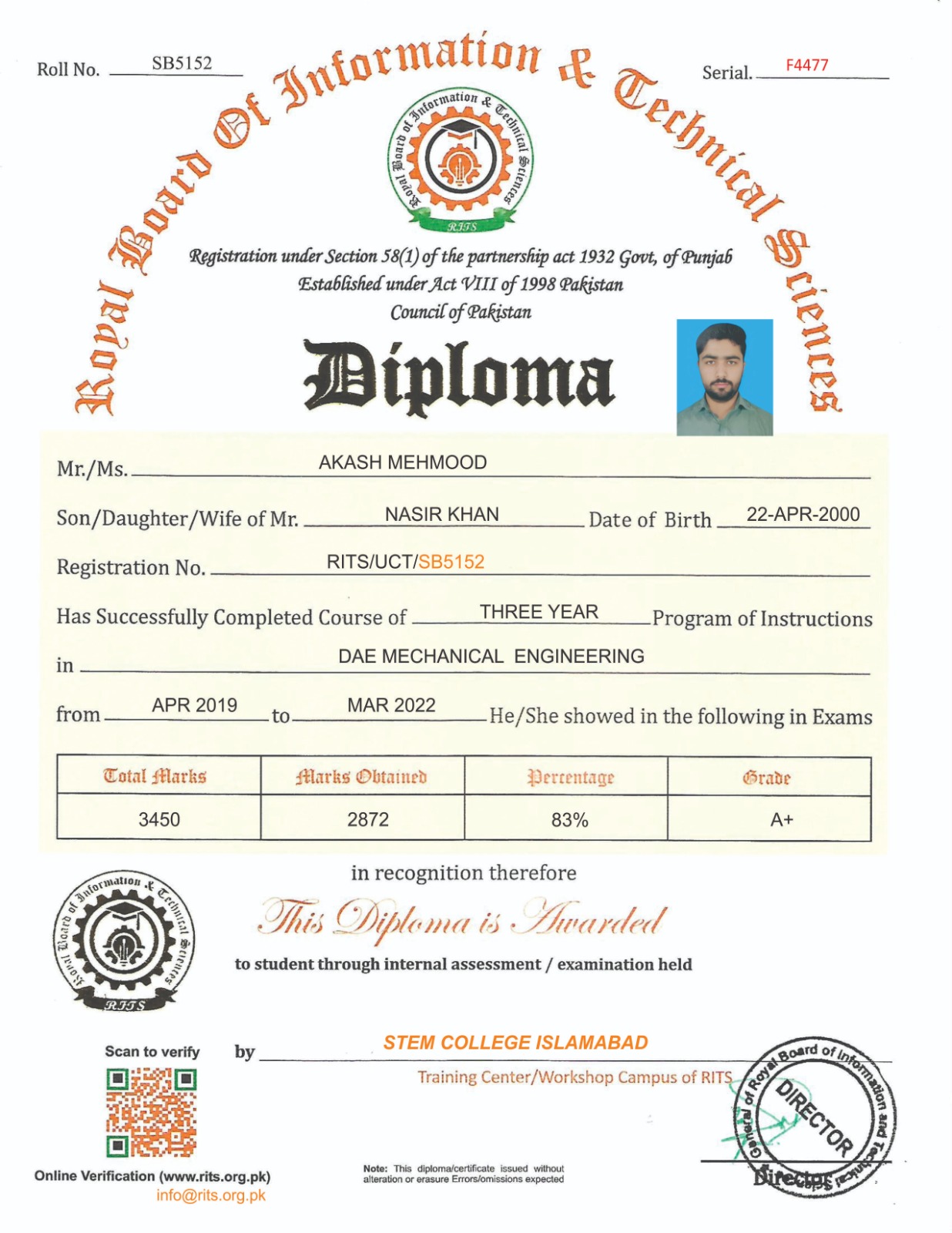 ROYAL BOARD OF INFORMATION & TECHNICAL SCIENCES LAHORE