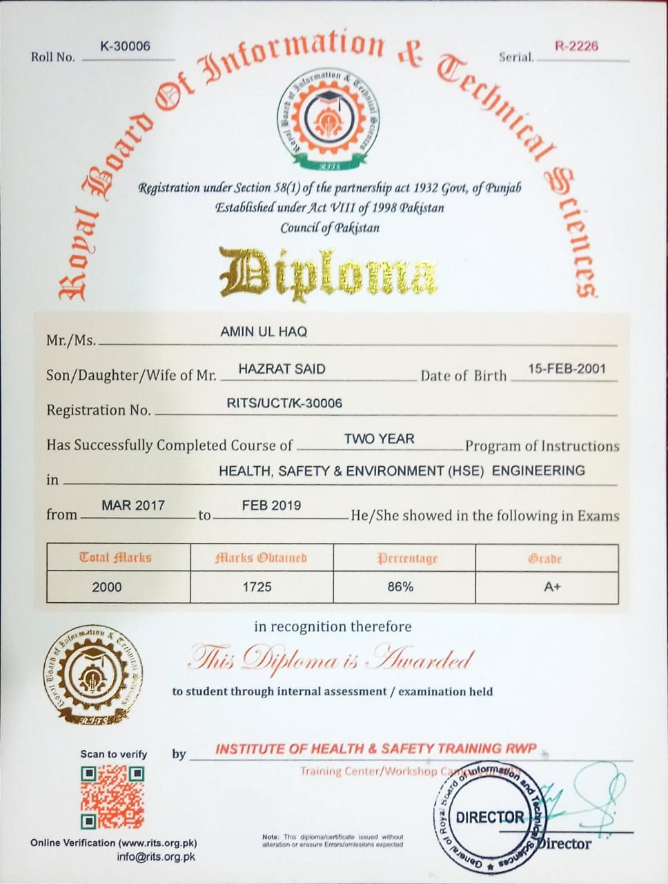 ROYAL BOARD OF INFORMATION & TECHNICAL SCIENCES LAHORE