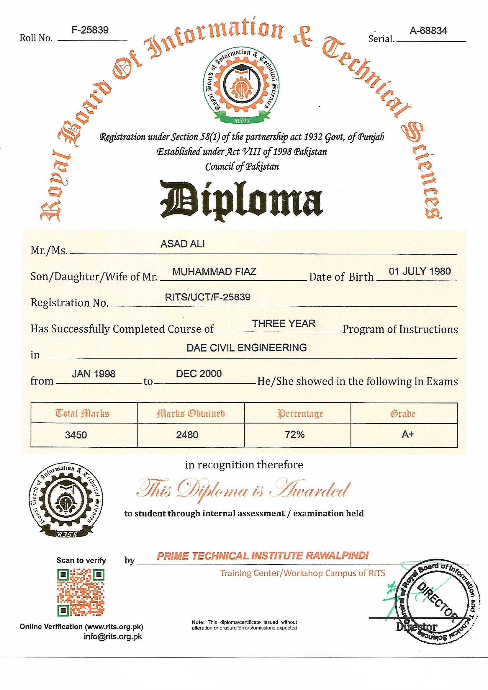 ROYAL BOARD OF INFORMATION & TECHNICAL SCIENCES LAHORE