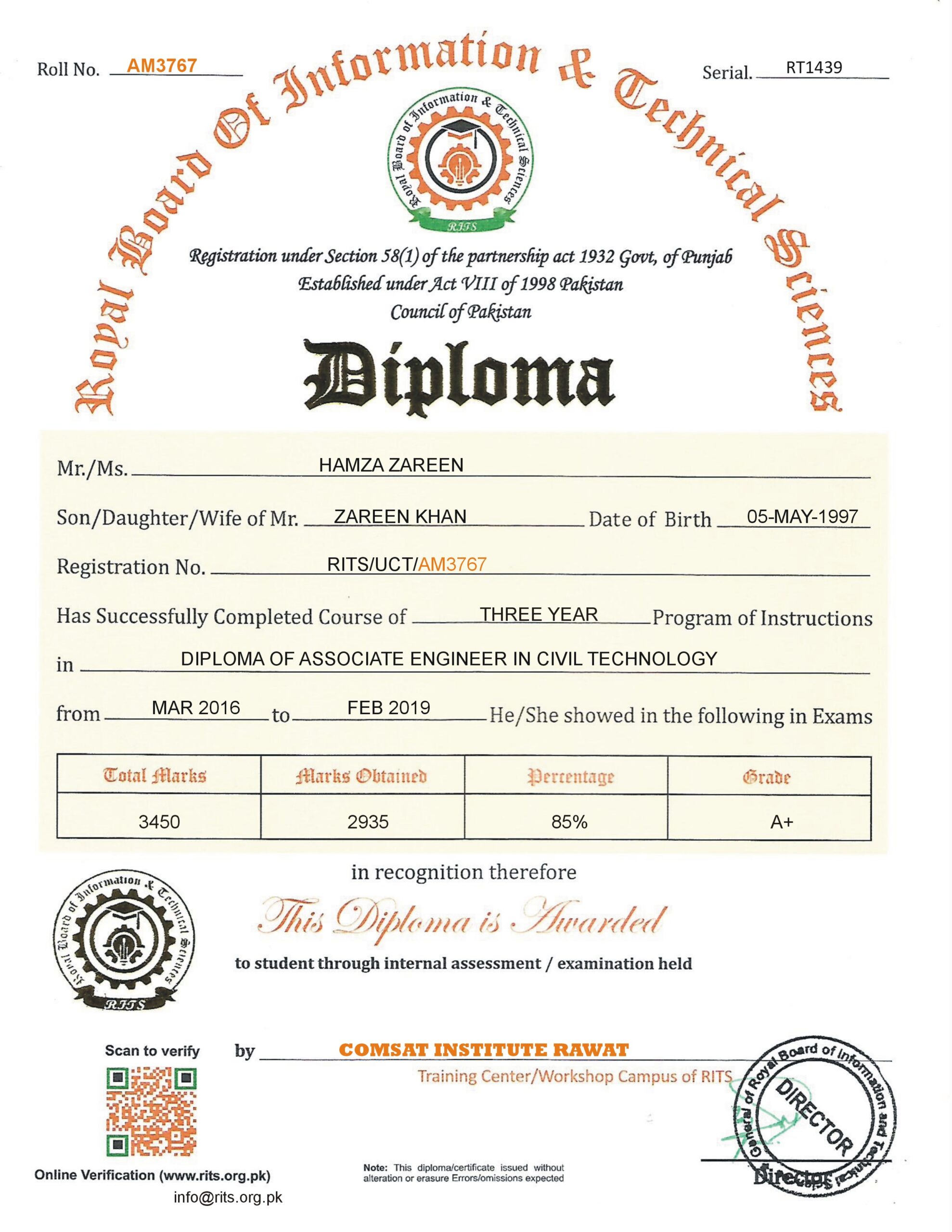 ROYAL BOARD OF INFORMATION & TECHNICAL SCIENCES LAHORE