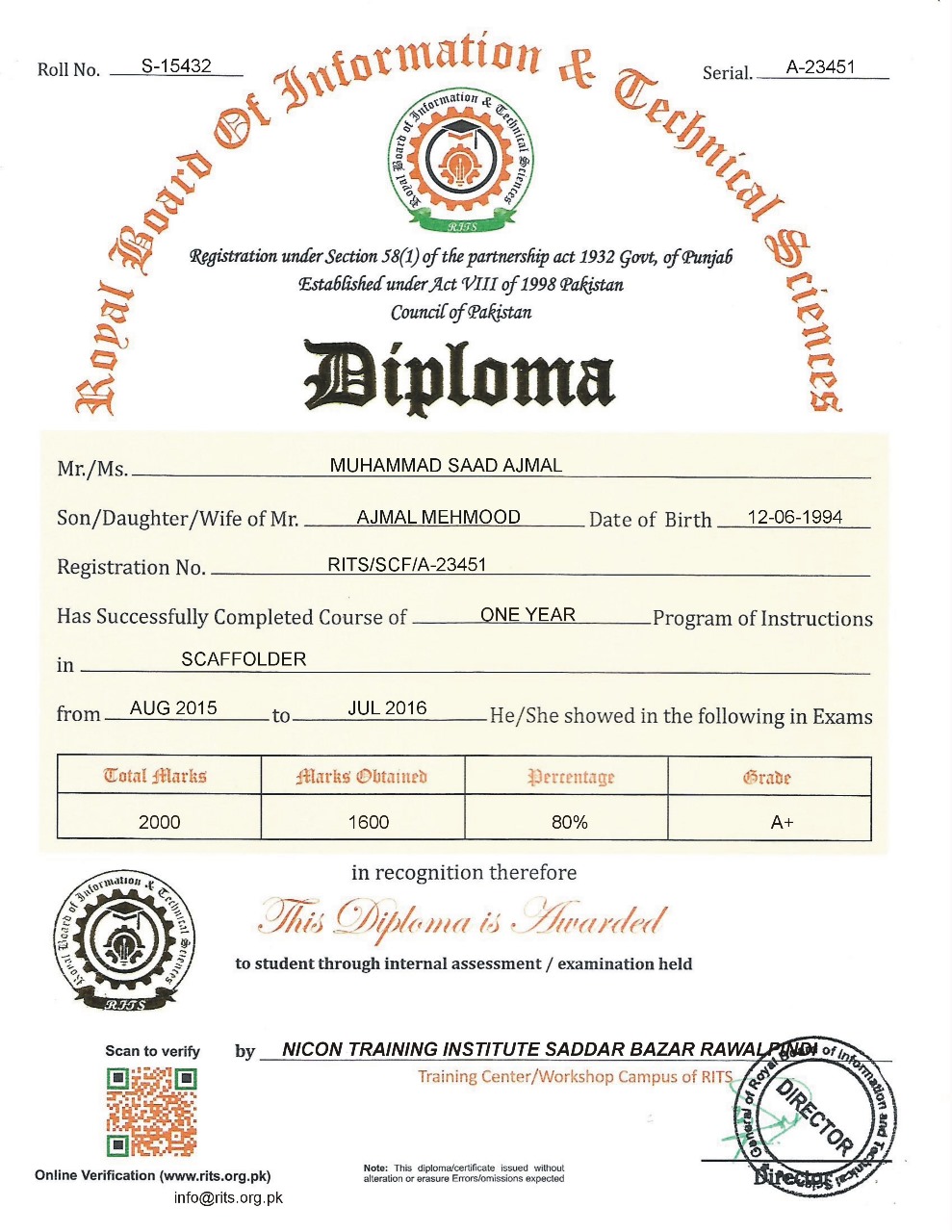 ROYAL BOARD OF INFORMATION & TECHNICAL SCIENCES LAHORE