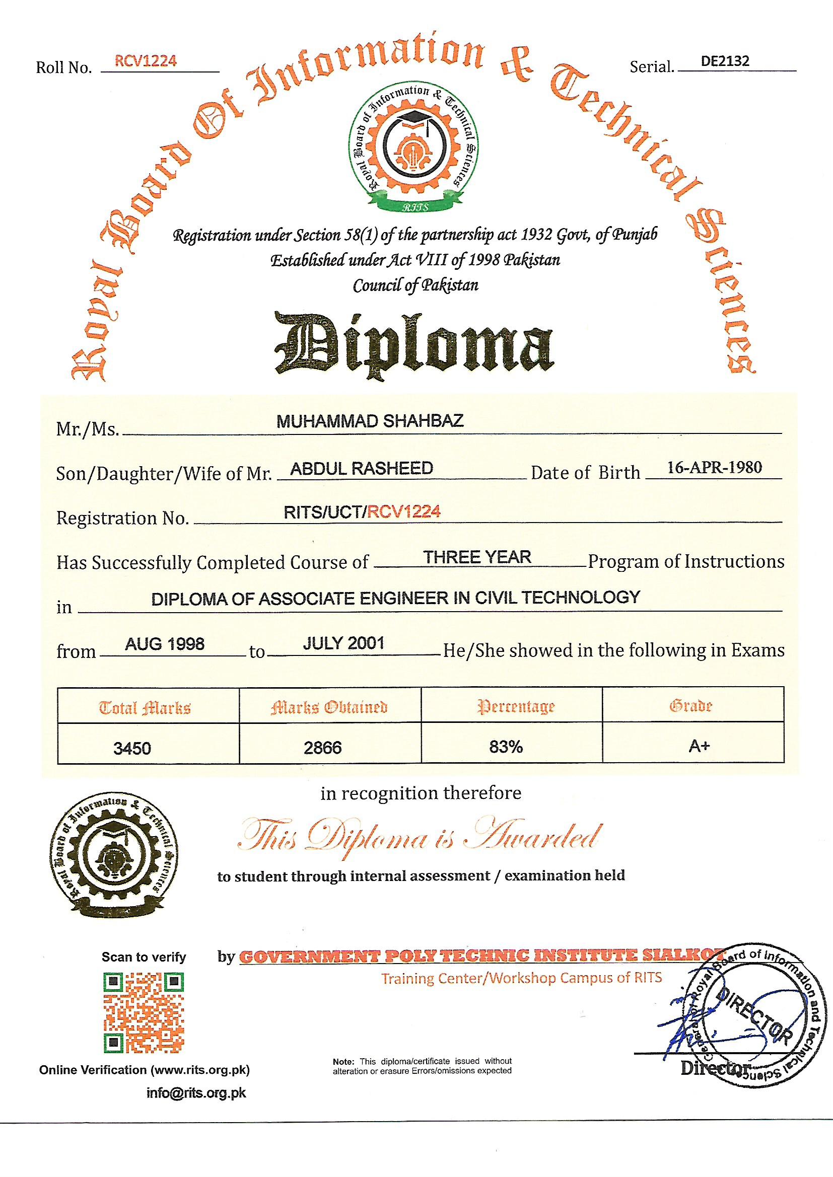 DIPLOMA OF ASSOCIATE ENGINEER IN CIVIL TECHNOLOGY