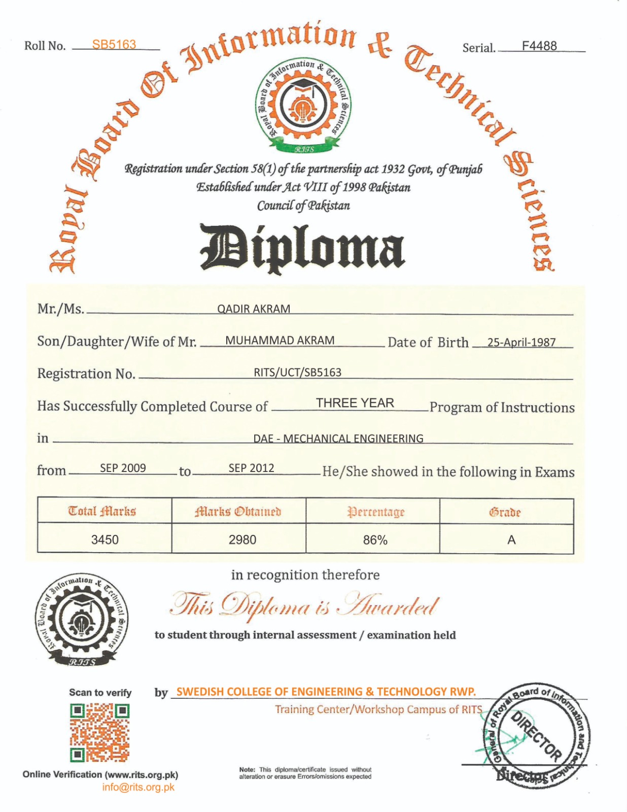 ROYAL BOARD OF INFORMATION & TECHNICAL SCIENCES LAHORE