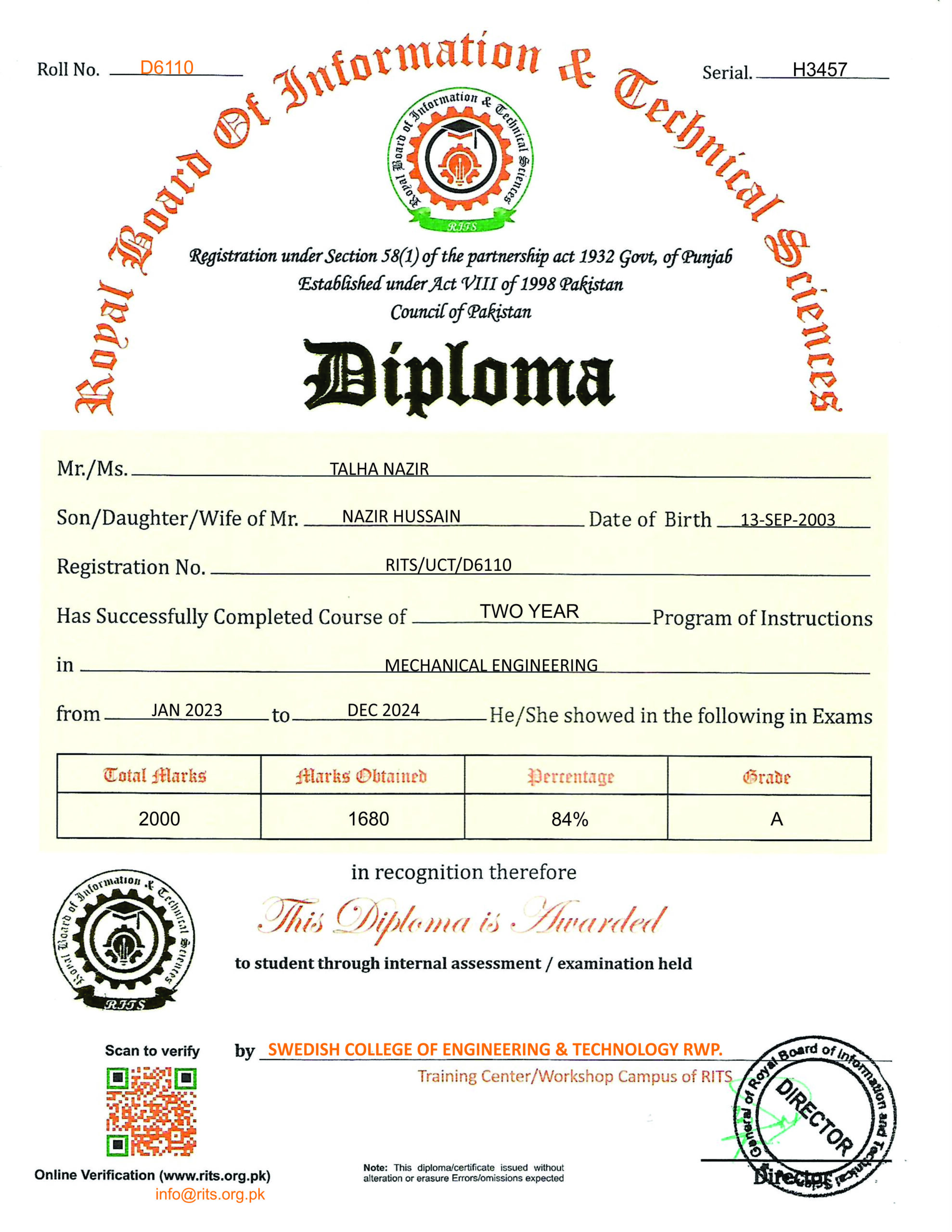 ROYAL BOARD OF INFORMATION & TECHNICAL SCIENCES LAHORE